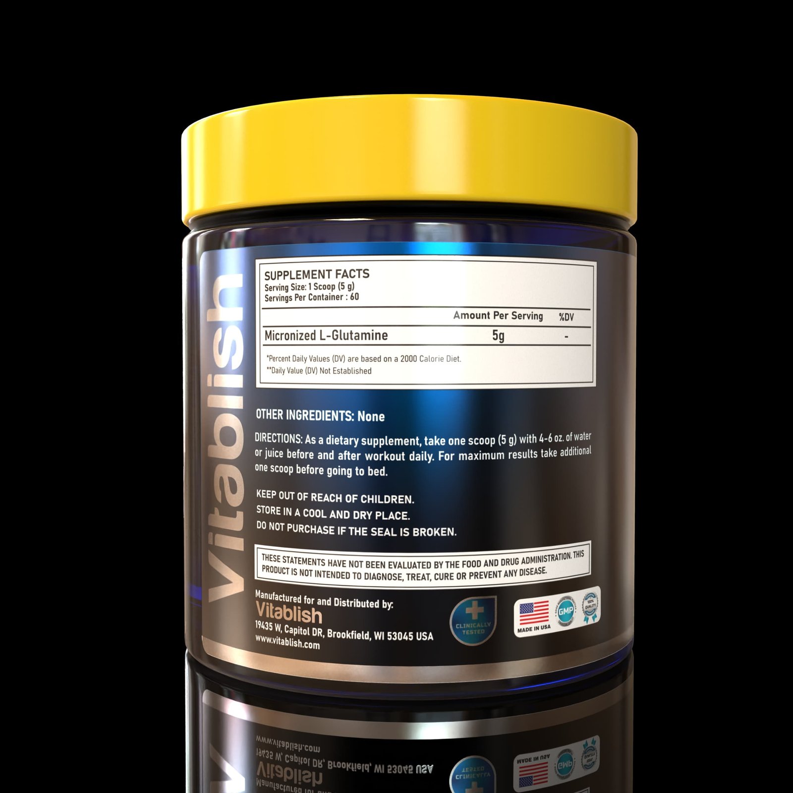 Accelerate your recovery and support lean muscle growth with Vitablish Micronized Glutamine Powder. This high-purity supplement delivers 5g of Glutamine per serving to help you bounce back faster and maintain a strong immune system after intense training sessions.