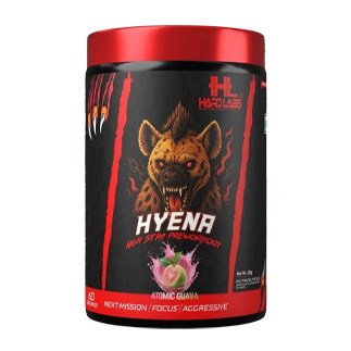 Unleash your inner intensity with Hard Labs Hyena High Stim Preworkout, an aggressive formula built for extreme focus and “no mercy” performance. Featuring a potent blend of Beta-Alanine, Caffeine, and Ashwagandha in a refreshing Atomic Guava flavor, it’s designed to power you through your toughest training missions.