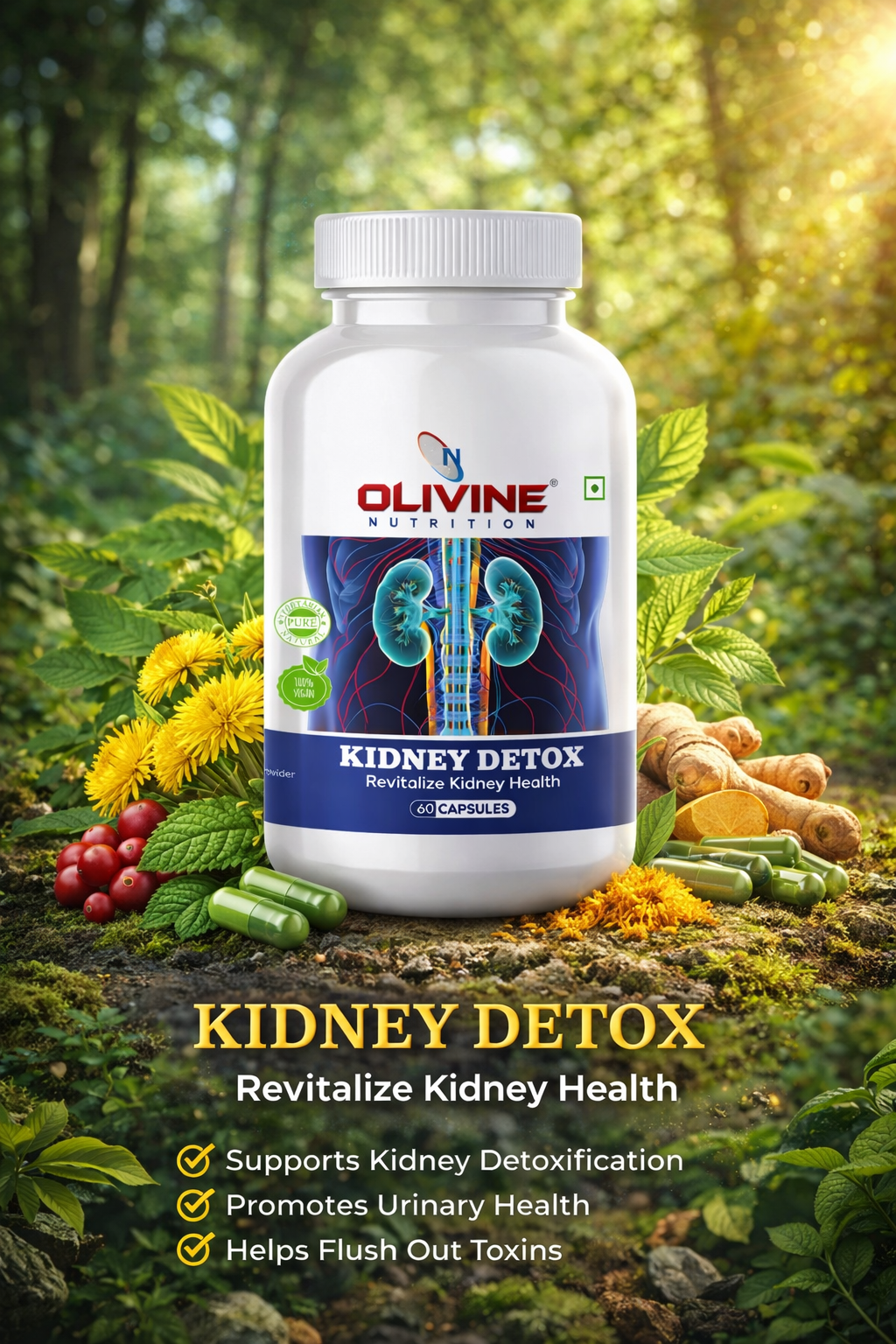Support your body’s natural filtration system with Olivine Nutrition Kidney Detox. This premium, 100% vegan formula contains 60 capsules designed to help revitalize your internal wellness and maintain optimal balance.