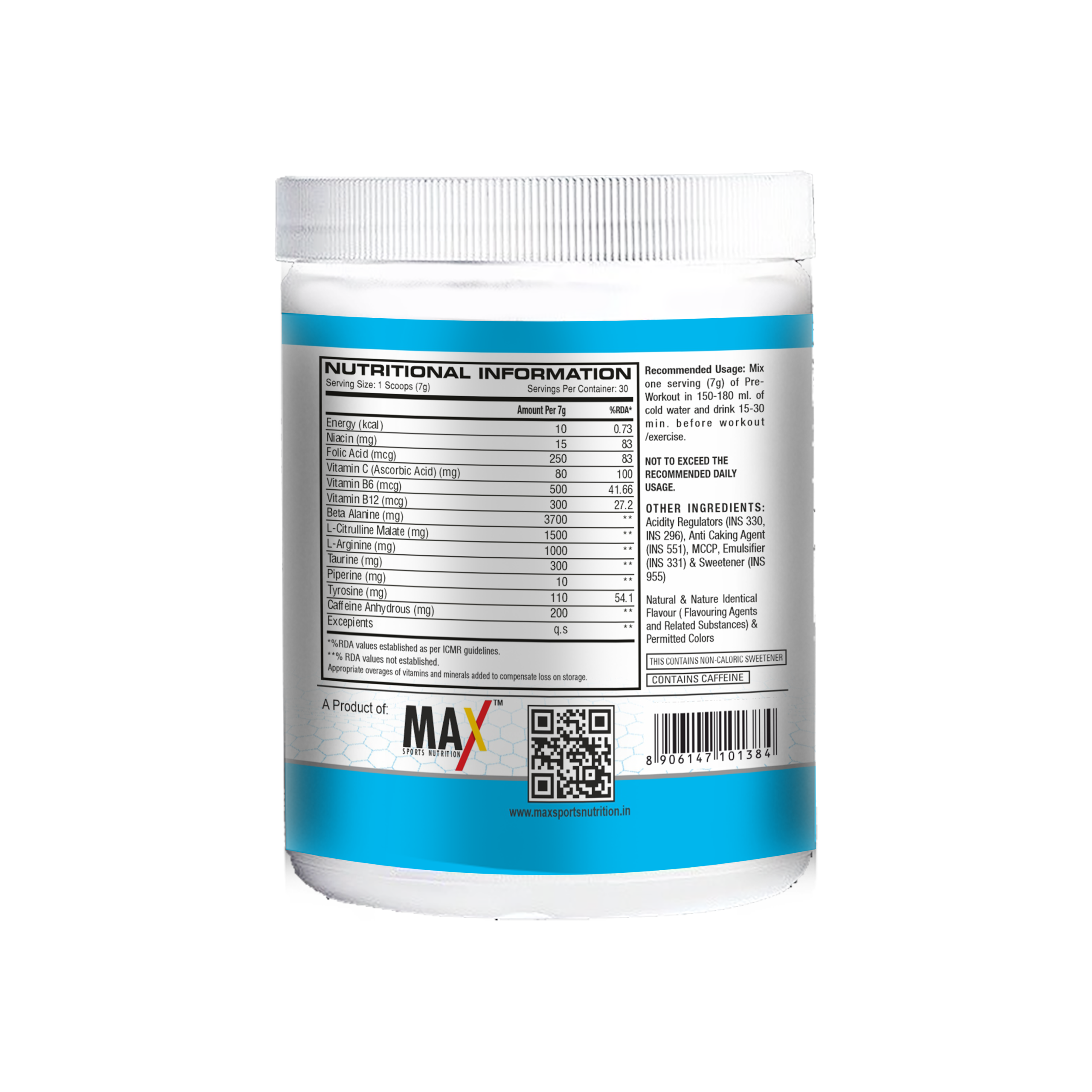 Max Sports Nutrition Hyper X is a powder that is mixed with water. The recommended serving size is 1 scoop, which should be taken 30-60 minutes before your workout.