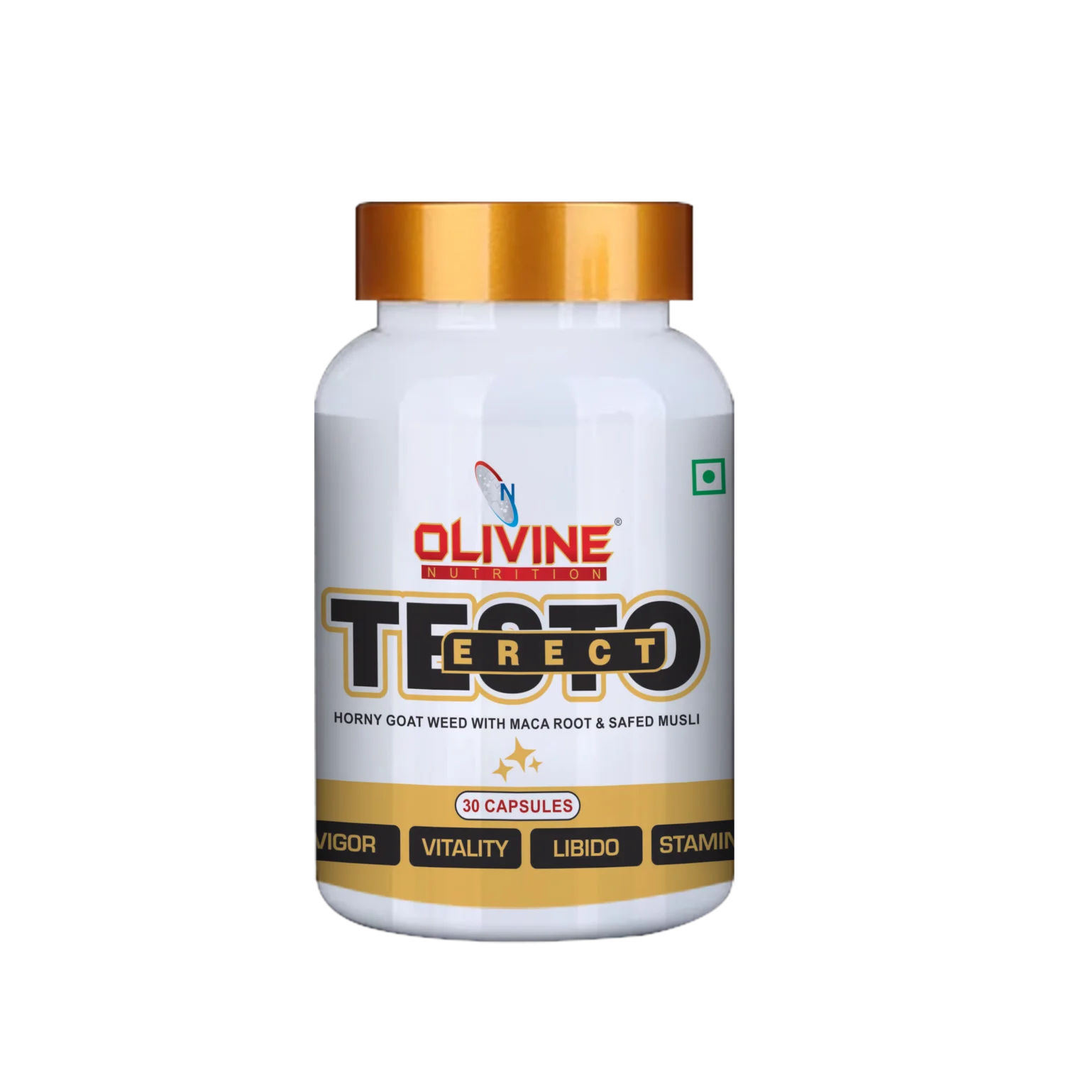 Reclaim your peak performance with Olivine Nutrition Testo Erect, a premium herbal blend designed to boost vigor and stamina. Formulated with powerful natural ingredients like Horny Goat Weed, Maca Root, and Safed Musli, these 30 capsules support vitality and libido for the active man.